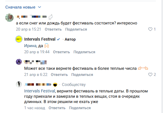 Фестиваль медиаискусства Intervals состоится в Нижнем Новгороде с 23 по 26 апреля, о чем сообщили его организаторы. Мероприятие не будет отменено или перенесено, даже несмотря на неблагоприятные погодные условия. В ответ на вопросы в социальных сетях о проведении фестиваля в снег или дождь представители дали утвердительный ответ.