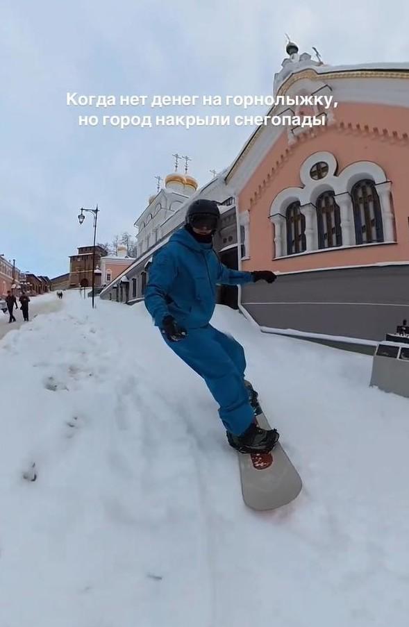После мощных снегопадов Нижний Новгород стал напоминать горнолыжный курорт. В сети активно распространяются видео, на которых местные жители катаются по городским улицам на ватрушках и сноубордах.