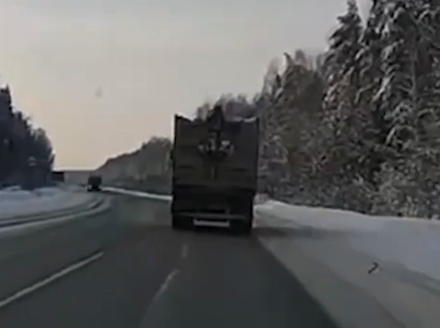 Мусор с переполненной машины летел в автомобили на трассе