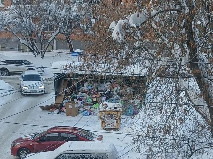 Контейнерная площадка на улице Совнаркомовской переполнена мусором