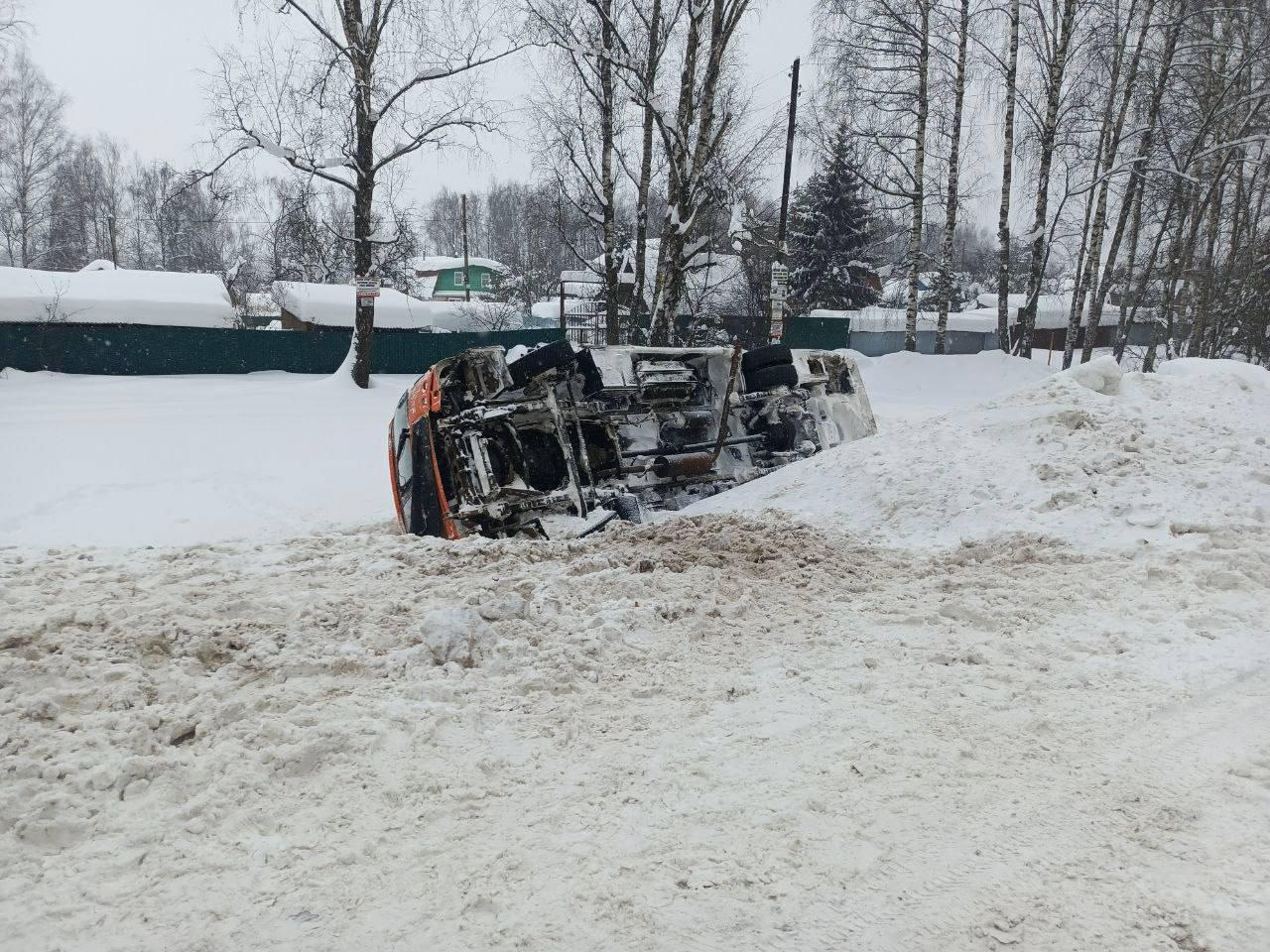 Утром 29 января в Нижегородской области произошло дорожно-транспортное происшествие с рейсовым автобусом. Транспортное средство перевернулось после того, как его подрезала легковая машина.