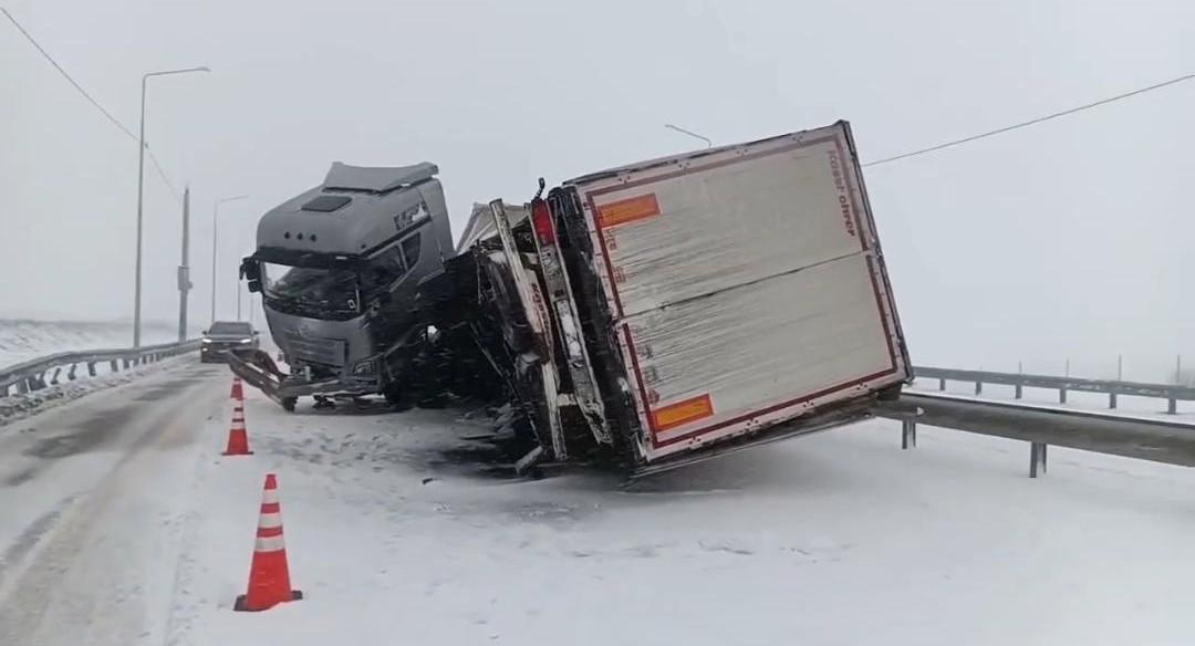 Грузовик вышел из-под контроля в условиях снежной бури.