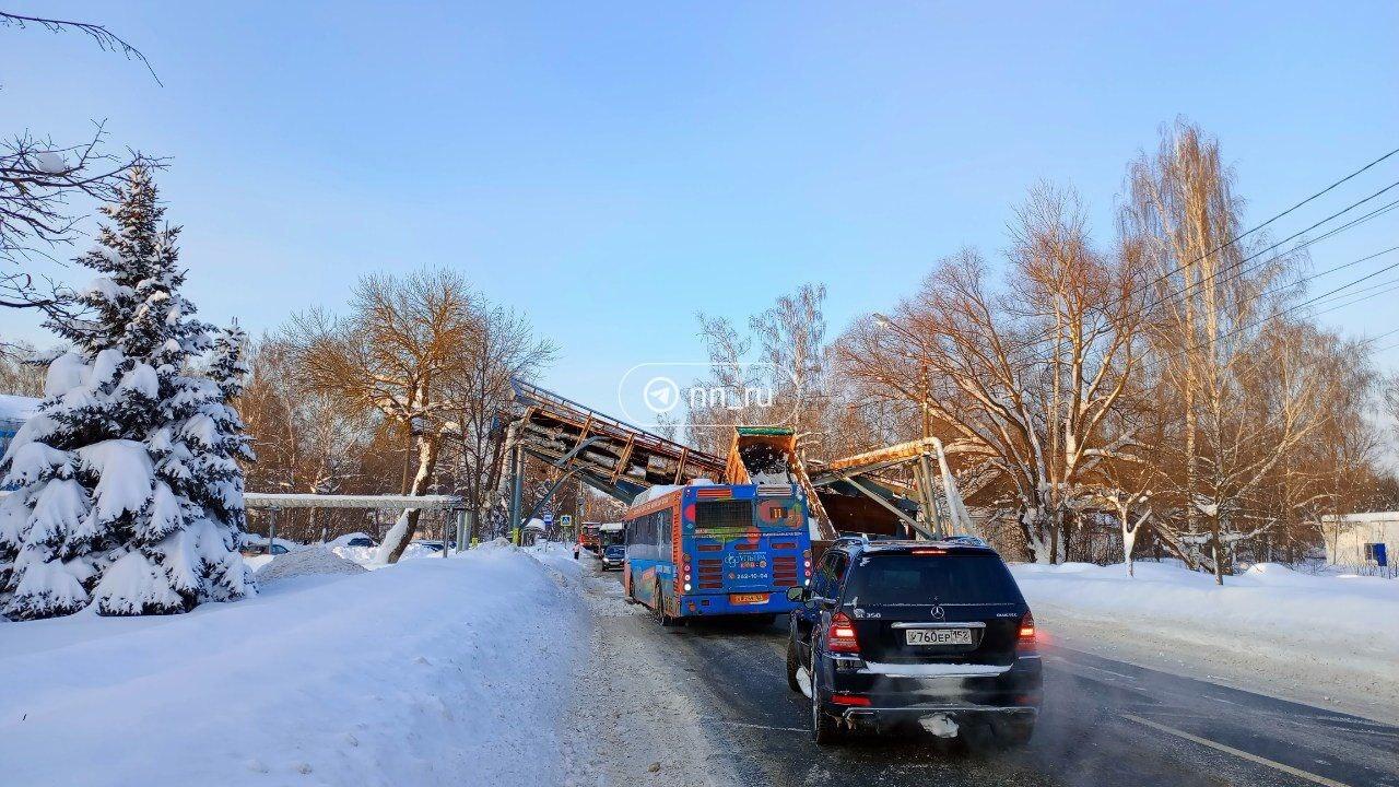 Днем 2 февраля в Нижнем Новгороде самосвал снес трубы вблизи аэропорта. Конструкция рухнула на рейсовый автобус.