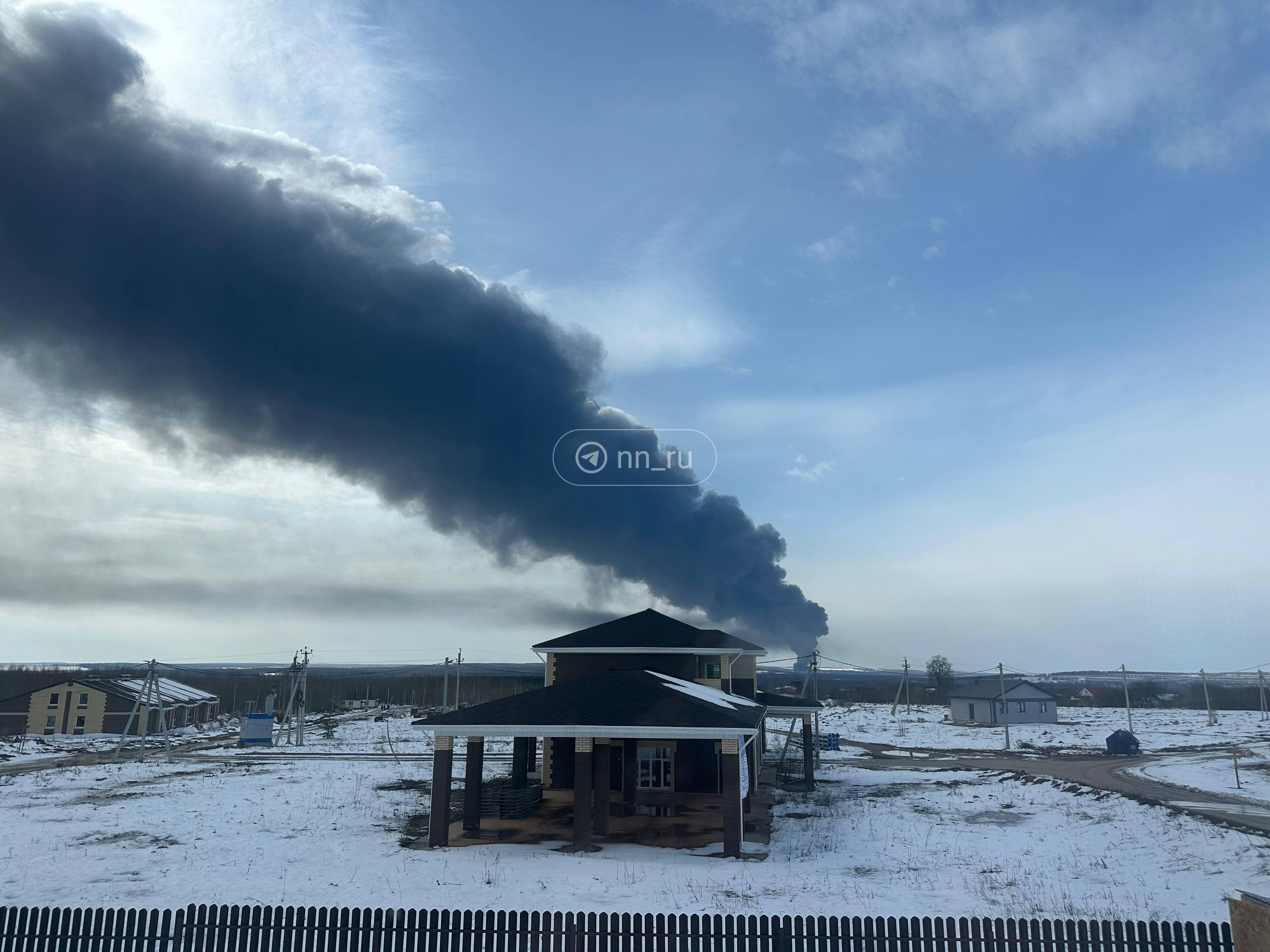 Очевидцы засняли несколько видеороликов с места происшествия. На кадрах виден огромный столб дыма, протянувшийся на несколько километров. Ранее эти кадры прокомментировал и губернатор Нижегородской области Глеб Никитин.