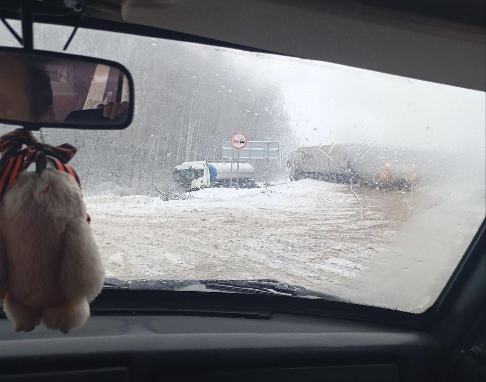 Три фуры столкнулись на трассе М-7, образовав пробку