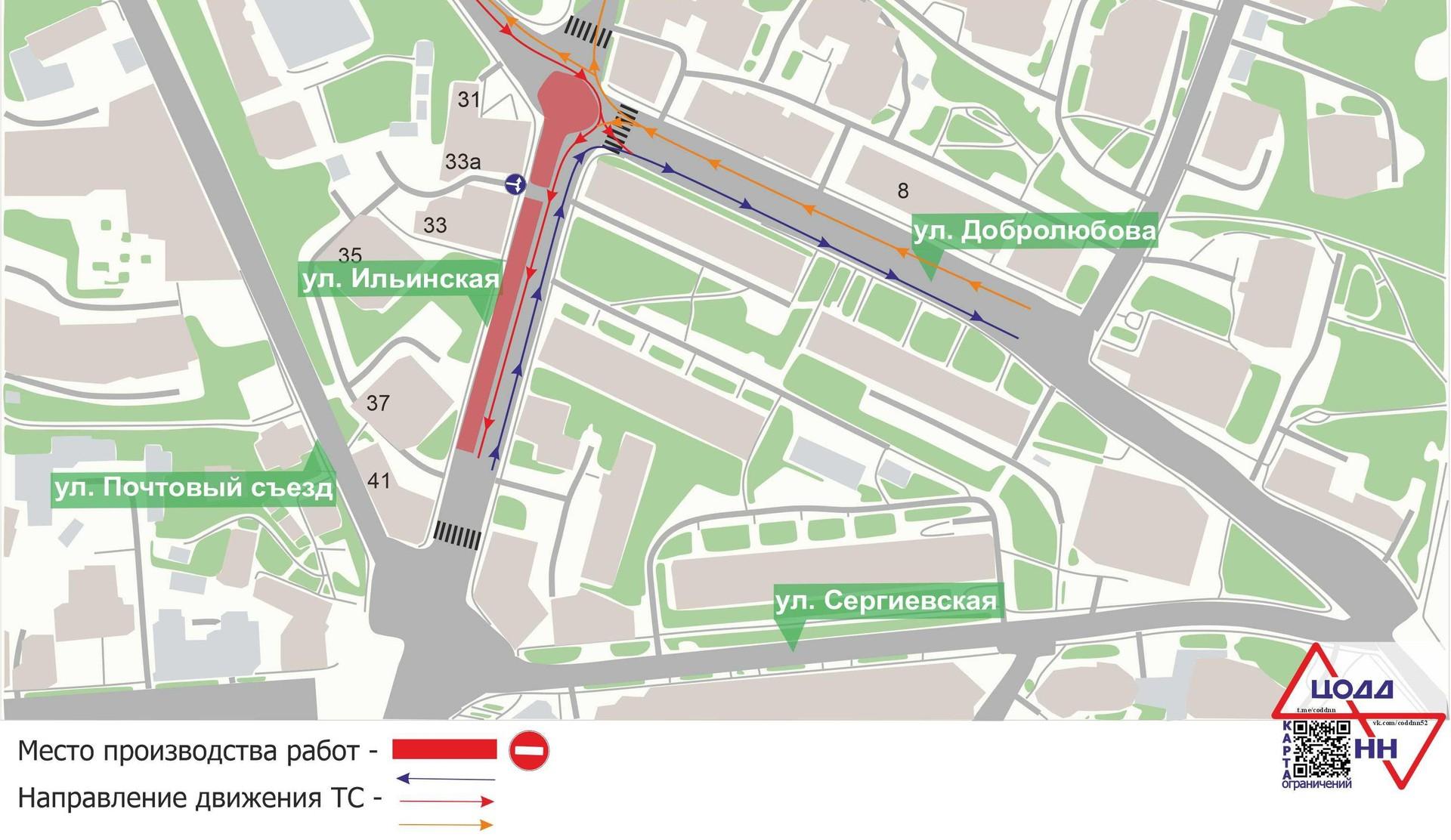 Схема, показывающая зону перекрытия движения на Ильинской улице.
