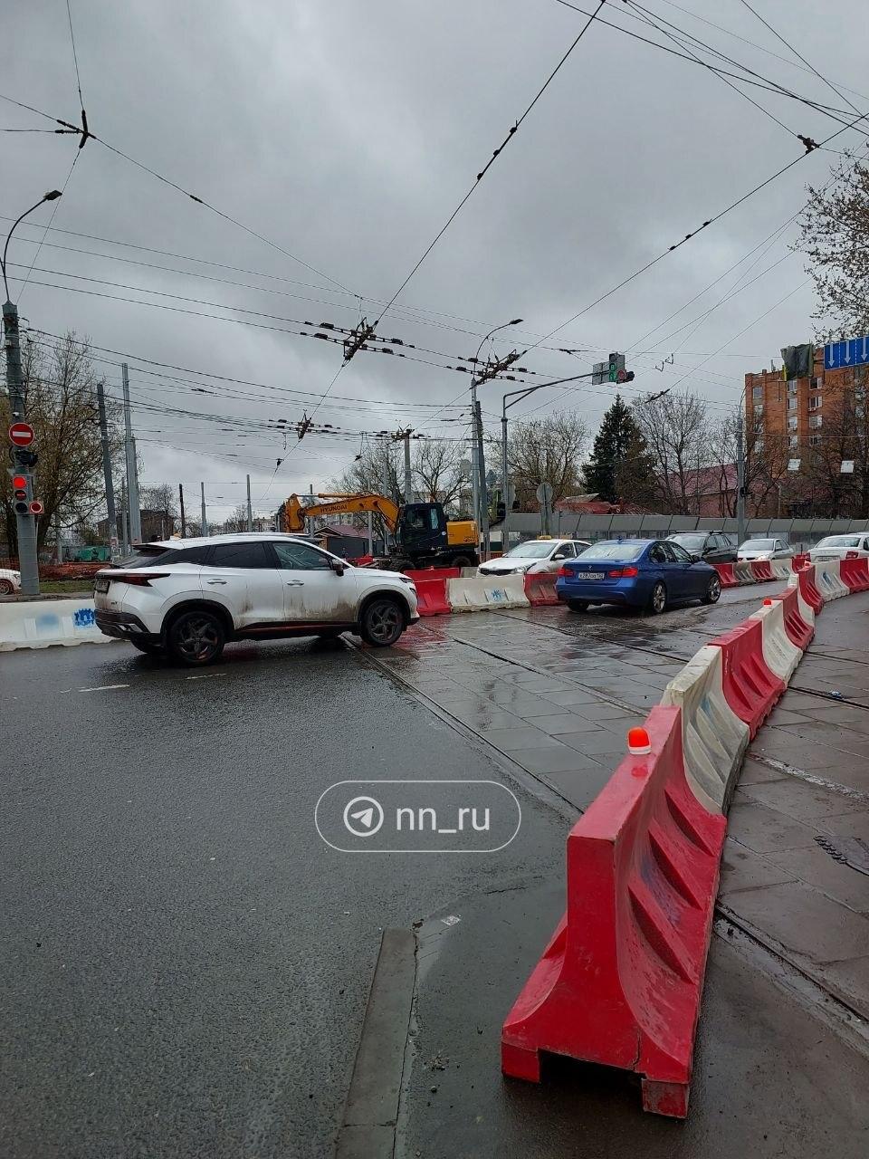 В Нижнем Новгороде с 25 апреля ввели ограничения движения на перекрёстке улиц Ванеева и Надежды Сусловой. Причина — сооружение монолитных участков трамвайных путей.